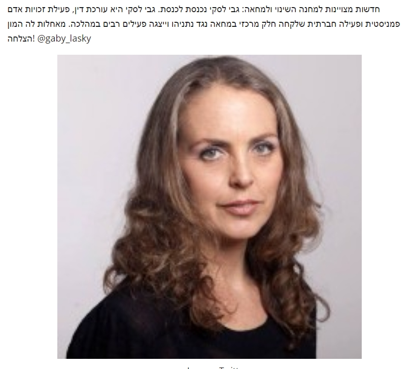 ‎Excelente noticia para el campo de cambio Gabi Lasky  entra en la Knesset.