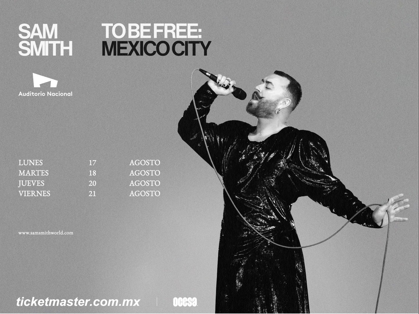 El artista multiplatino Sam Smith anunció su nueva residencia “To Be Free: Mexico City”, una serie especial de conciertos que se presentará durante cuatro noches en el Auditorio Nacional en agosto de 2026.