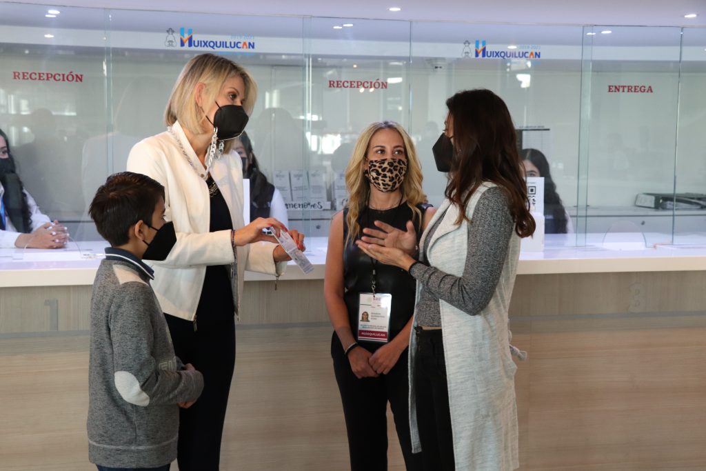 SHARON ALPERSTEIN TITULAR DE LA OFICINA Y LA presidenta municipal, María Eugenia Torres, entregó los primeros tres pasaportes electrónicos que se expiden en Huixquilucan