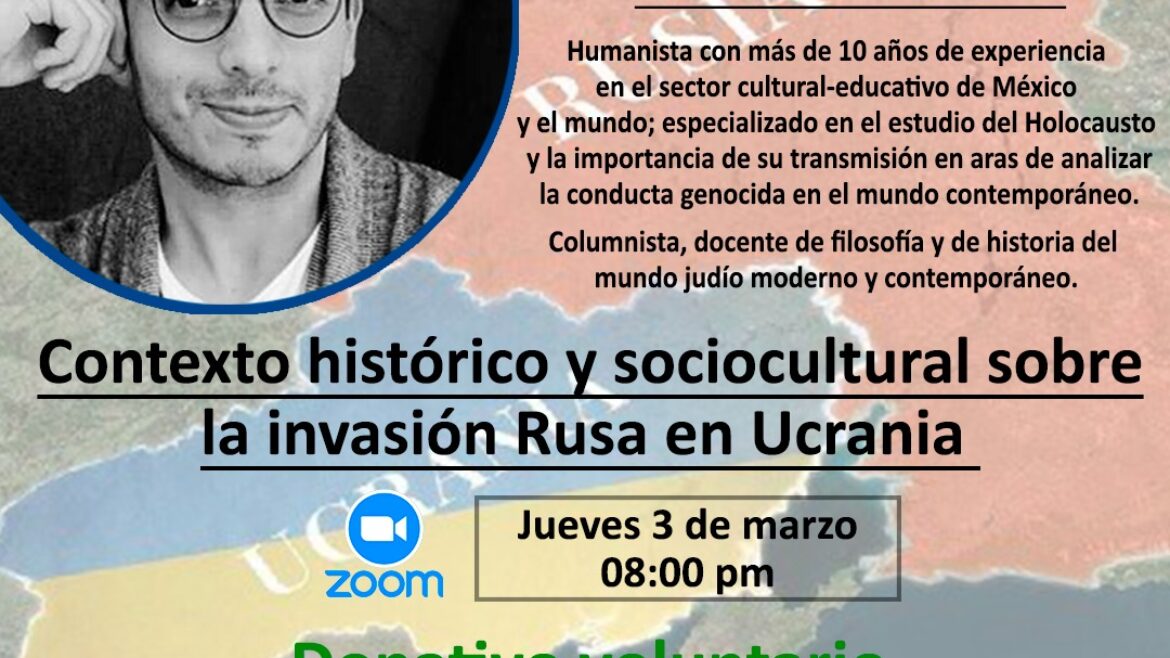 Te invitamos a la plática vía Zoom: "Contexto histórico y sociocultural sobre la invasión Rusa en Ucrania" con Bruno Chávez .